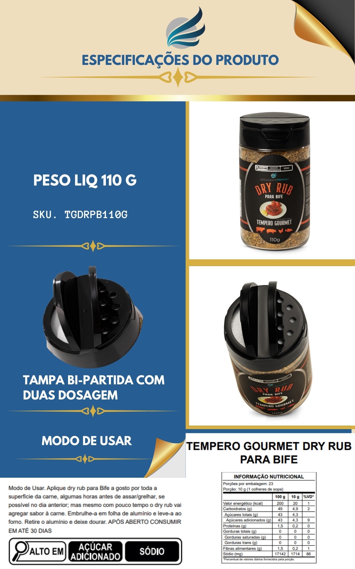 Sua fórmula 100% natural é livre de aditivos químicos e conservantes artificiais, respeitando o sabor original da carne e elevando a experiência do churrasco ou da grelha a um padrão gourmet. Ideal para bifes altos, cortes especiais e grelhados artesanais, o Dry Rub para Bife entrega performance profissional em receitas caseiras.