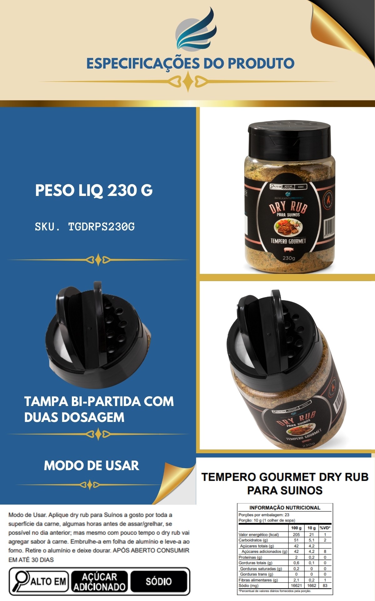 Produzido com ingredientes 100% naturais e livre de aditivos químicos, este tempero respeita o sabor original da carne e proporciona uma experiência gastronômica refinada. Ideal para costelas, pernil, lombo e cortes especiais, o Dry Rub para Suínos entrega performance profissional em receitas caseiras.